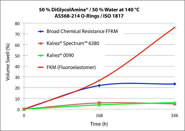 A major chemical company switched to Kalrez® Spectrum™ 6380 perfluoroelastomer parts for amine resistance and increased mean time between repairs (MTBR). MTBR improved 3x in a mechanical seal for hot, aggressive amines.